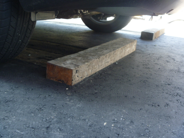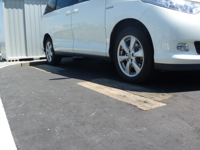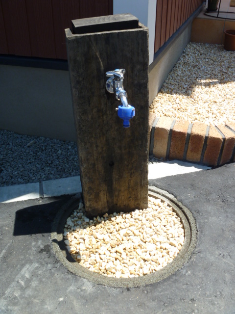 アスファルトに枕木を埋め込み、無機質な空間を優しい印象に変えました。