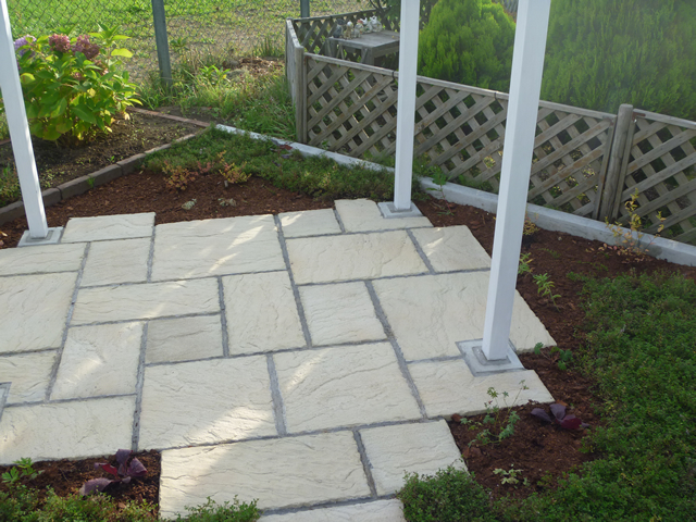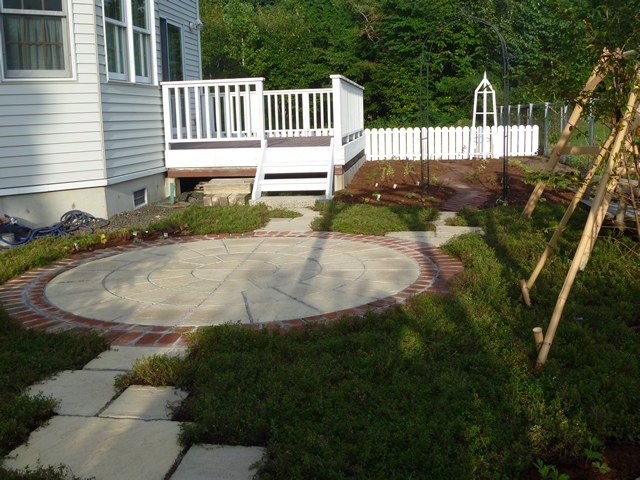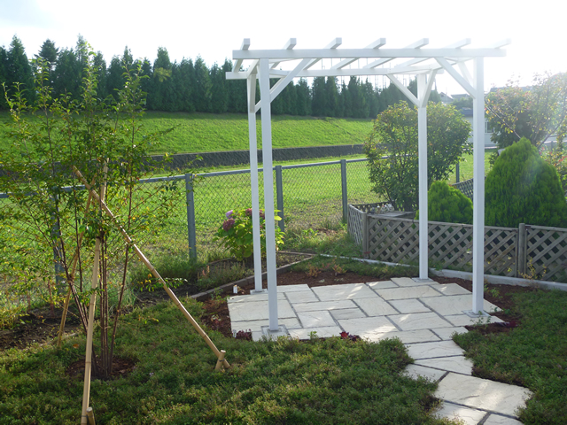 ほとんど手つかずの状態だった広大なお庭が、お花に囲まれたプライベート空間へと生まれ変わりました。お庭までのアプローチにはレンガで作られたヘリンボーンが優しい印象を与え、さらにハーブの香りで心も癒されます。ネオストーンで作られたサークルが庭全体を引きしめ、統一感ある空間を創造します。