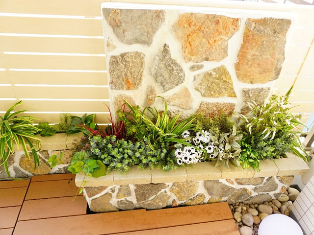 花や樹木は寒冷地の為と別荘の為、メンテナンスを考慮し、人工樹木・造花を使っていますが、本物にしか見えません。